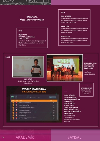 Mathematical Association of America                Bronze Certificate                                                                                       Türkiye Birincisi