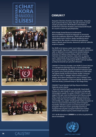 dönüştüğünü yaşadık. Bu açıdan CKMUN17 bizim için çok